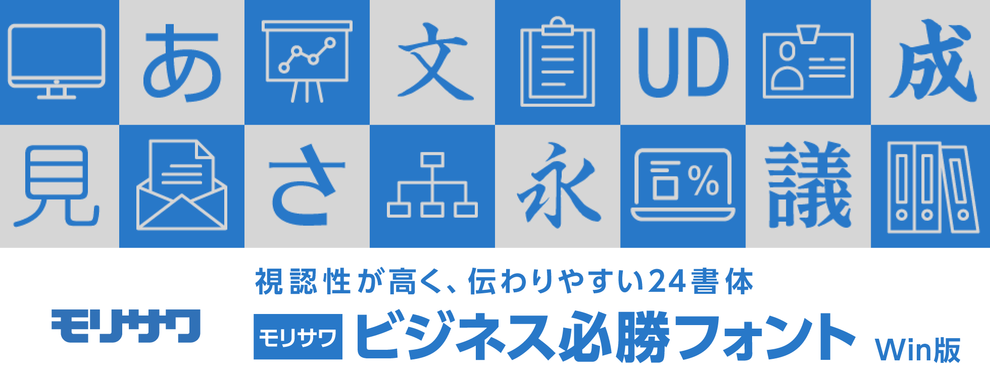 株式会社モリサワ(代表取締役社長:森澤彰彦、本社:大阪市浪速区、以下モリサワ)は、2025年2月27日(木)より、ビジネスシーンにおけるドキュメントやコンテンツ作成に役立つフォントを収録したライセンスパッケージ「モリサワ ビジネス必勝フォント Win版」 を、ソースネクスト株式会社(代表取締役社長:小嶋智彰、本社:東京都港区、以下ソースネクスト)の運営するソースネクスト・サイトにて発売しました。