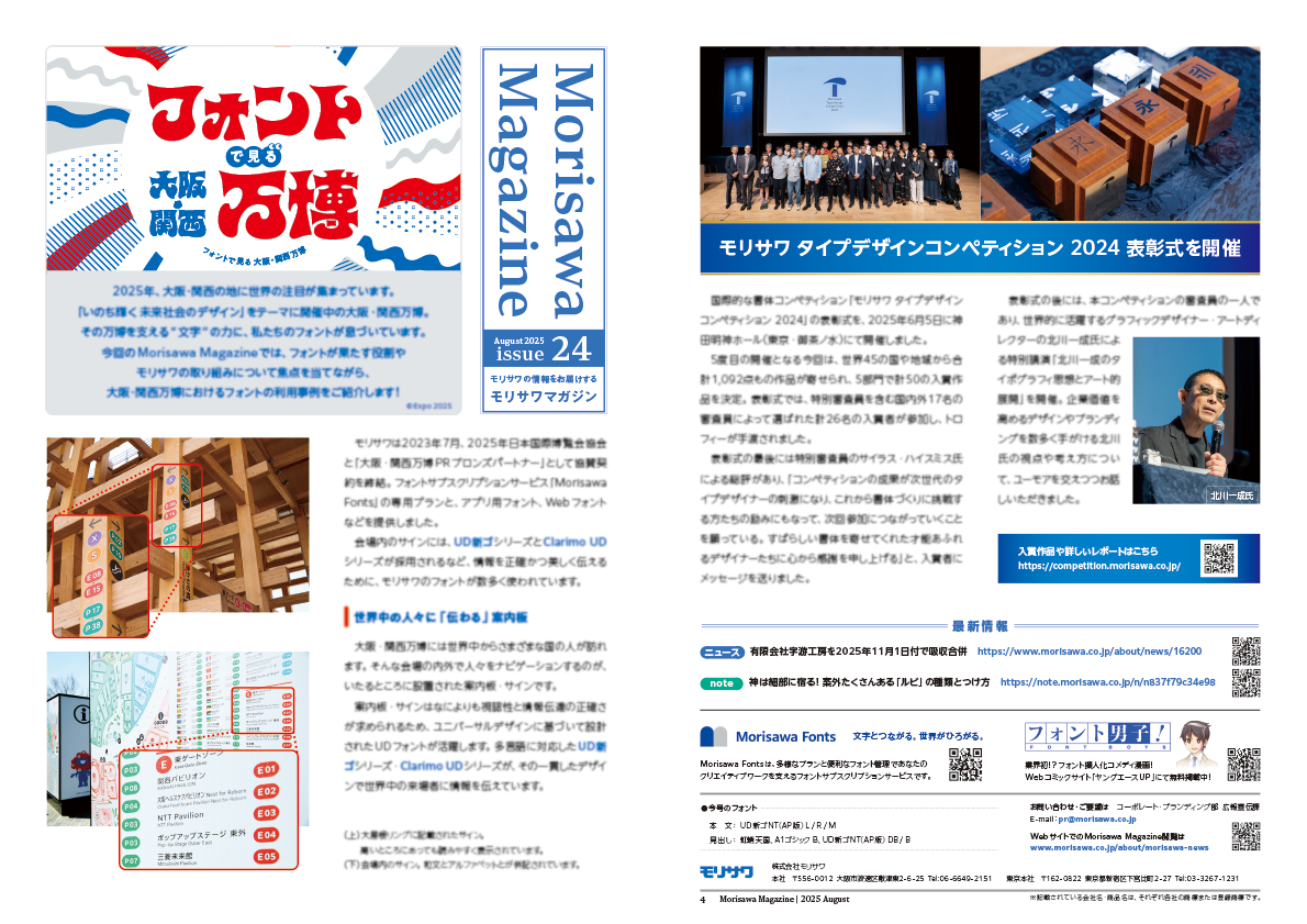 株式会社モリサワ(以下モリサワ)は、広報誌「MORISAWA MAGAZINE」24号を発行しました。