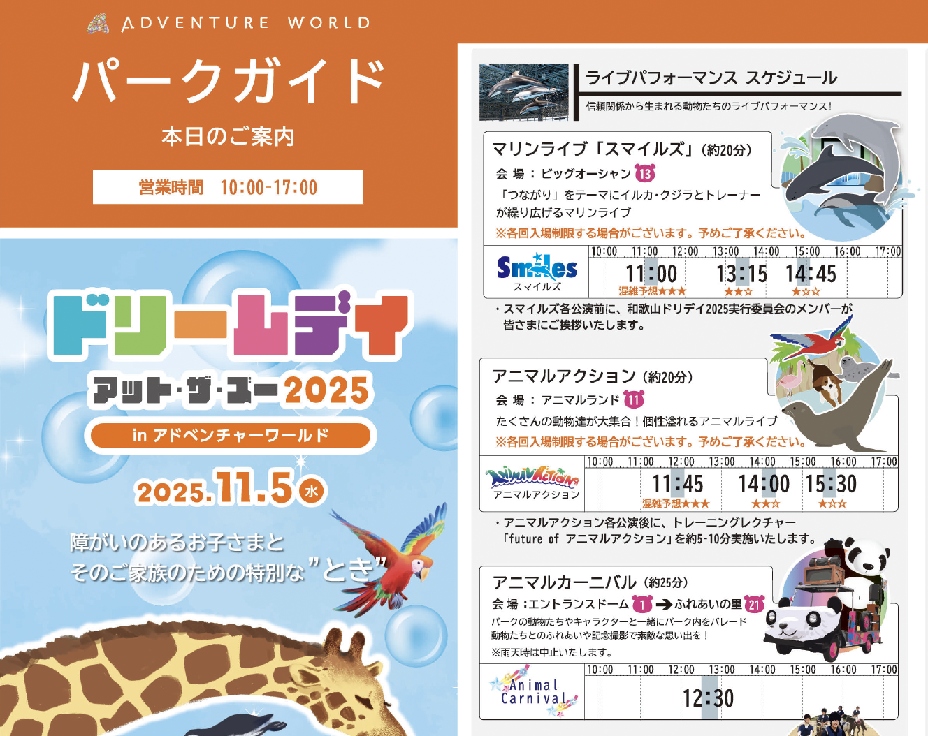 「ドリームデイ・アット・ザ・ズー 2025 in アドベンチャーワールド」では、視覚に障害のある方にも見やすく、読みやすくなるよう特設サイト、イベントの各種ガイドや掲示物の文字に「UD(ユニバーサルデザイン)フォント」(UD新ゴ、BIZ UDゴシック)が採用されています。