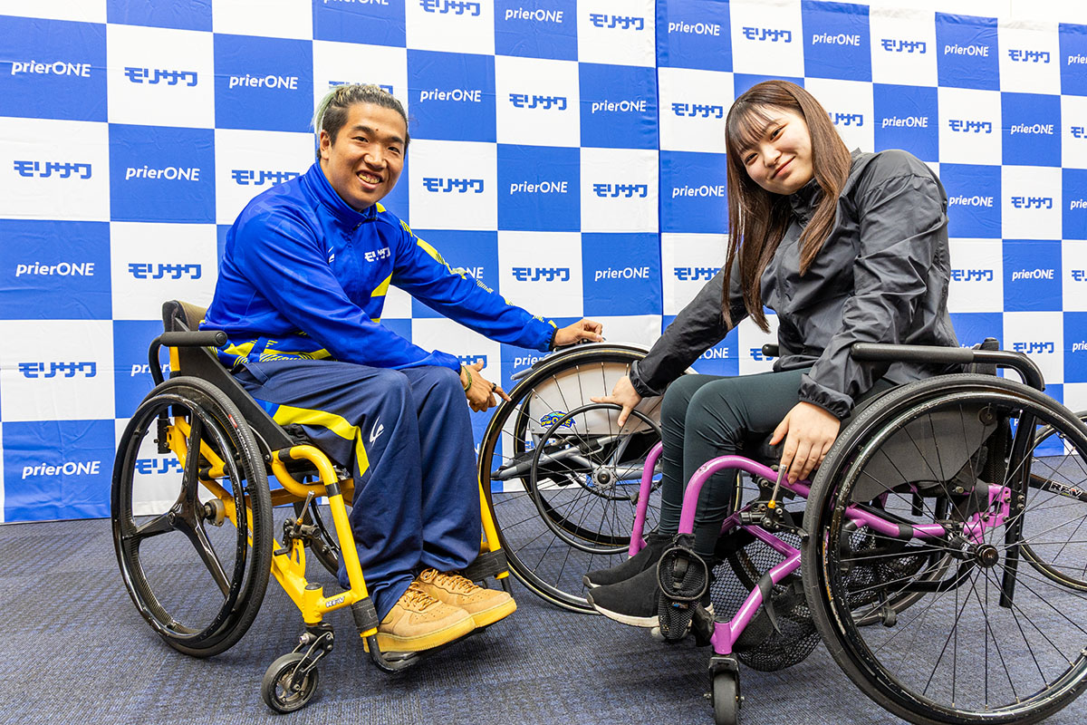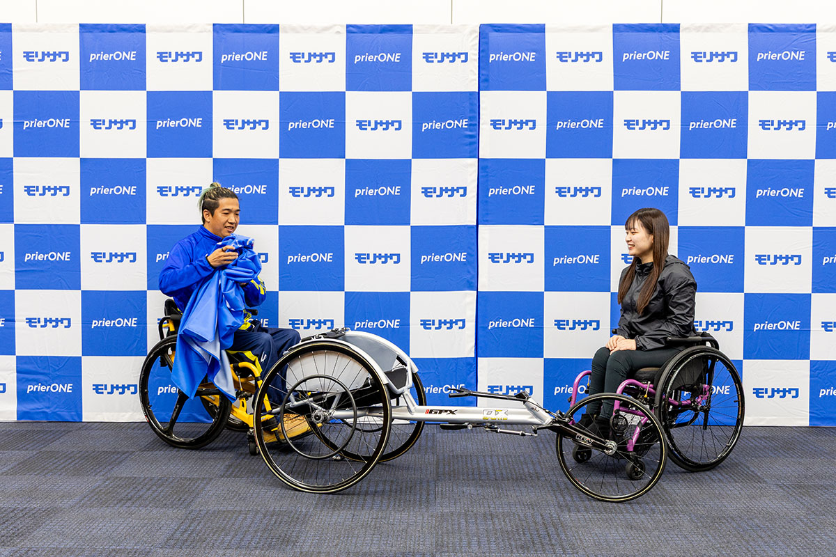「佐藤選手は、prierONEのステッカーにも使われている青と黄色のウエアをいつも着ていて、大会会場でも目立っています。そんな佐藤選手に、大分国際車いすマラソンで真剣に取り組んでいた姿を見つけてもらえてすごくうれしかったです。これまでは借りていたレーサーに乗っていて、クッションやベルトでなんとか自分の体に合わせて走っていました。今回、はじめて自分の車いすを持つことができて、とてもうれしいですし、このレーサーで走るのが楽しみです。現在、私は大学で語学を学んでいるので、prierONEのレーサーで海外の大会に出ていろんな国の選手と交流したいと思いました。また、障害者の就労選択肢の拡大を目標にした障害者専門の芸能事務所『accessibeauty』に所属していて、モデル活動にも取り組んでいます。今回、レーサーを寄贈していただけたことで、私の夢が大きく広がりました。これからも、いろいろな挑戦をしていきたいです」