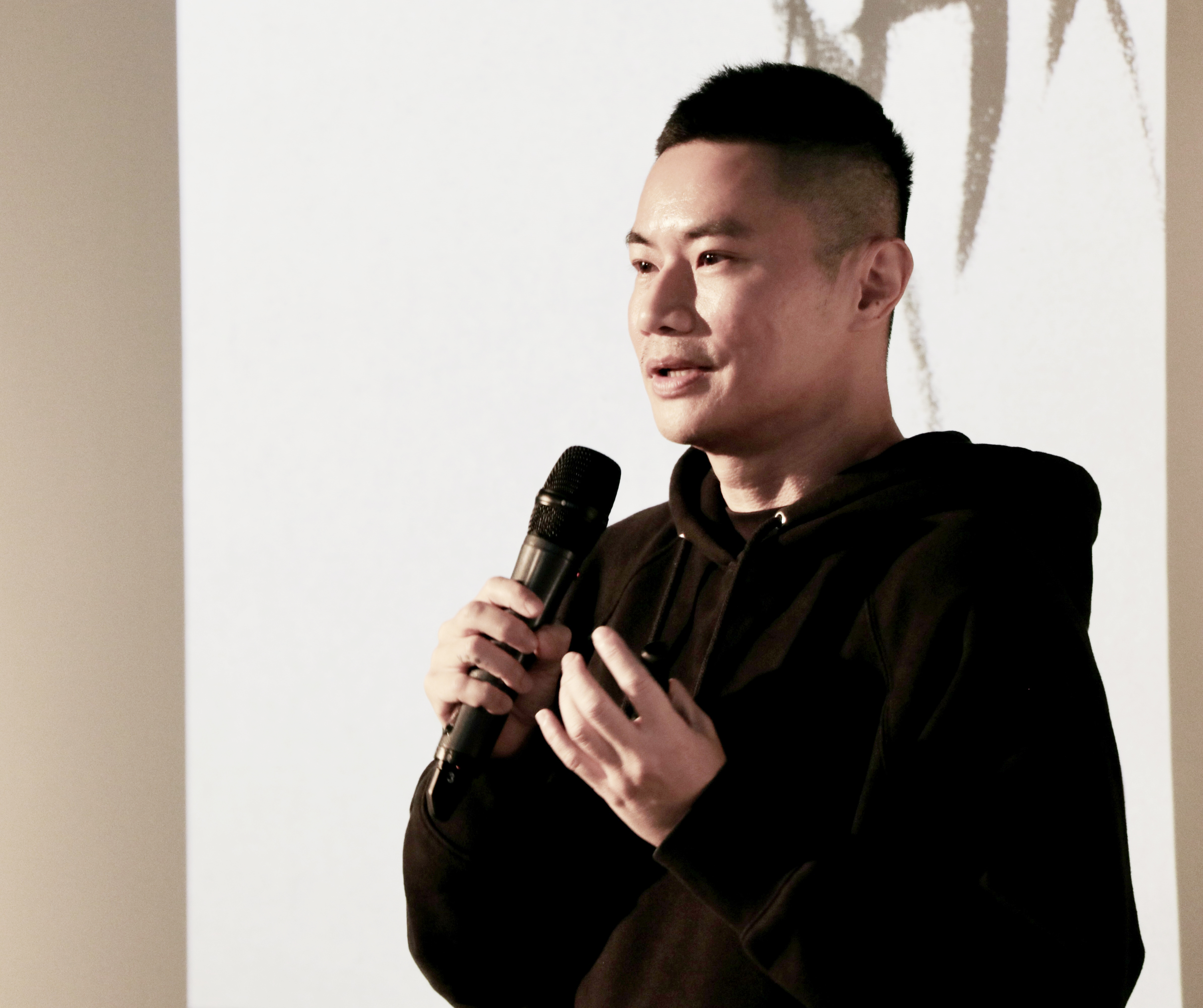 20年前、自ら手掛けた日本語を組み込んだデザインや中国語の文脈にひらがなを取り入れた映画や本のタイトルを紹介し、言葉をミックスした表現は新たな解釈や表現を生み出す契機になったとし、それらを振り返り、文化や時代背景で、そのデザインの持つ意味の重心が少しずつ移る。現在はより母国語を大切にしつつ新たな表現を創出していると述べた。