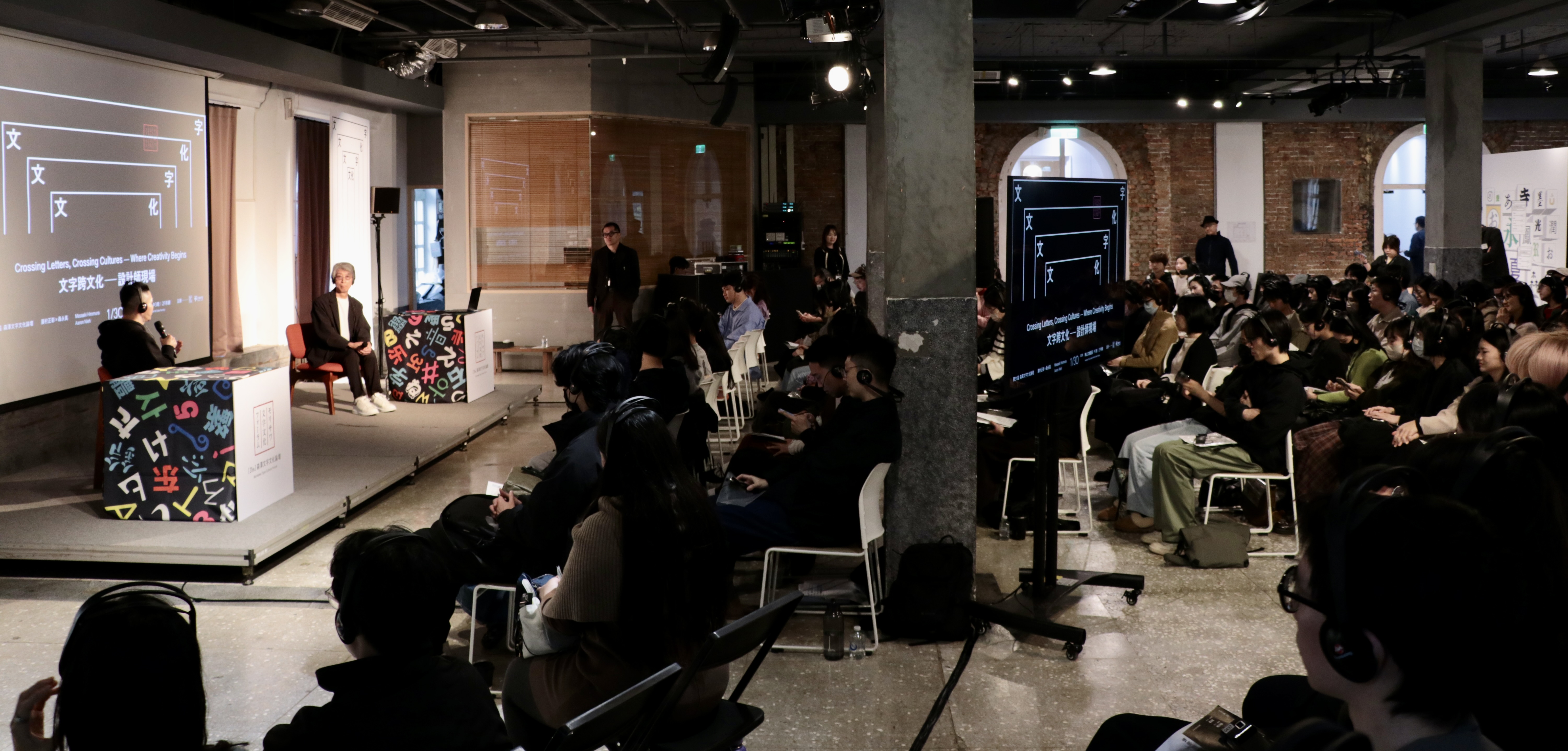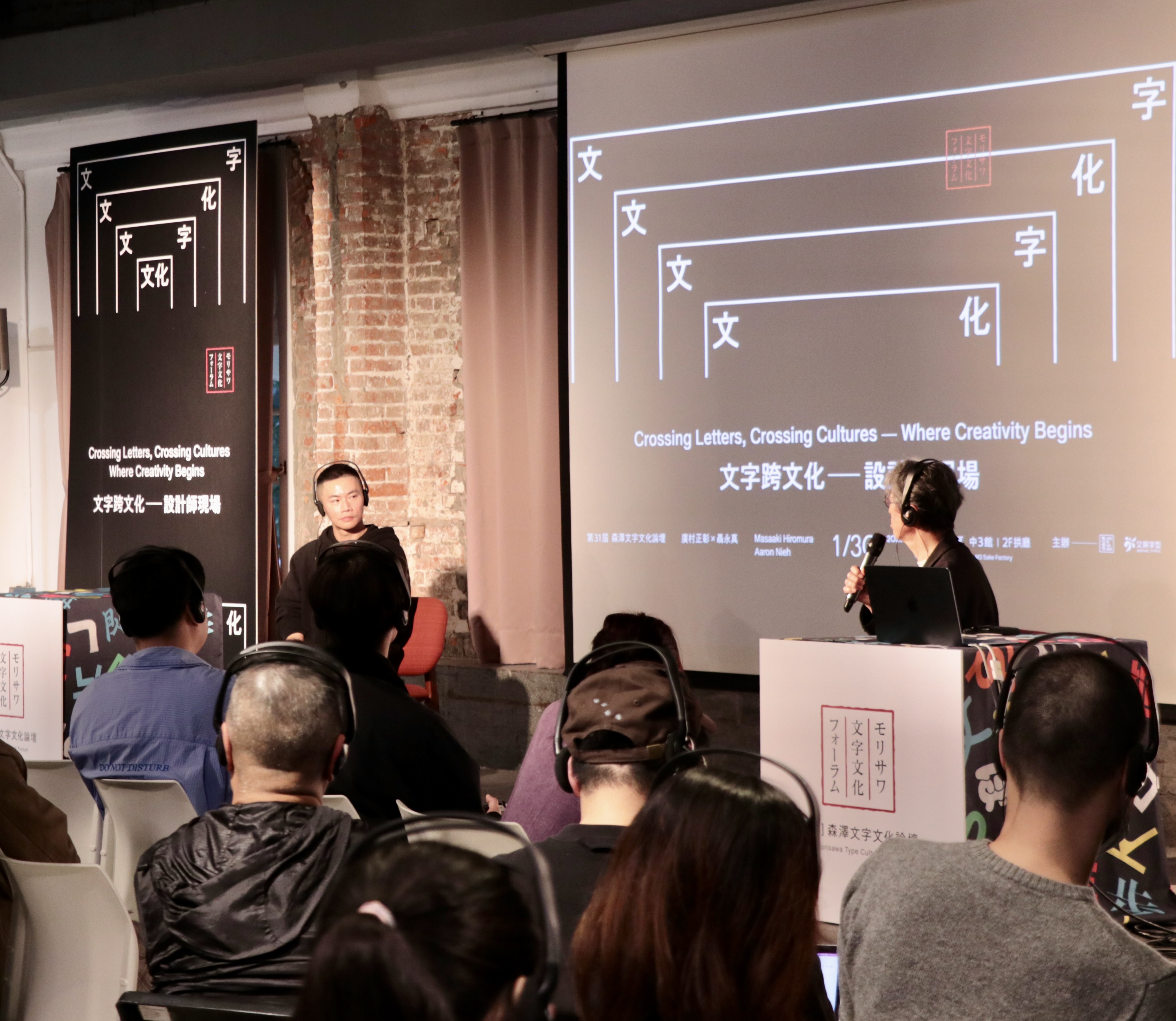 Aaron Nieh氏と廣村正彰氏が登壇し、「文字は文化の立場であり、スタンスである」というテーマのもと、クロストークが行われた。