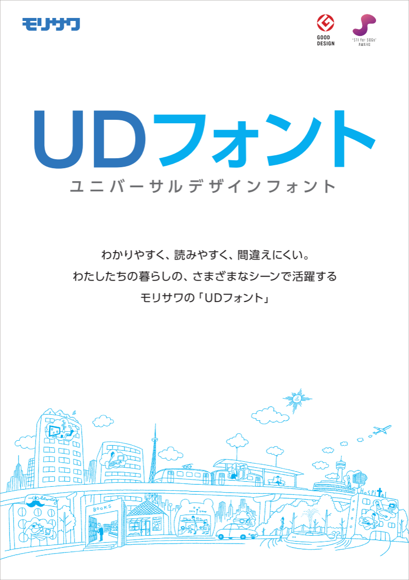 モリサワUD書体のコンセプト、ラインナップをまとめたカタログです。実際の使用シーンを想定した組見本も掲載しています。