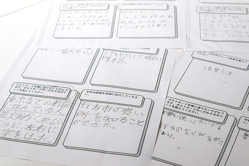 その過程では、ポジティブな意見だけではなく、ネガティブな意見も含めてさまざまな声が上がりました。しかしそれによって、行方市らしさを多面的に捉えることができ、大きな手応えを感じました。職員にとっては、じっくりと意見を交わす貴重な機会になったと思います。また小学生向けワークショップでは、候補書体のシールを使ったポストカードを制作し、素敵な作品が生まれました。参加者それぞれに、行方市に対する自分なりの思いがあることが伝わってきて、市の仕事に携わる者としてとても嬉しかったですね。