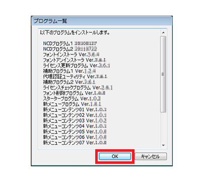 インストールするプログラムの内容一覧が表示されます。
