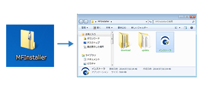 ダウンロードしたzipファイルを解凍し、中の「インストーラ」をダブルクリックで起動します。