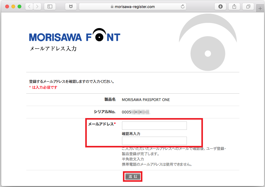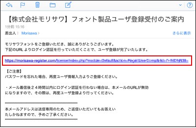 ※30分以上経過してもメールが届かない場合、モリサワまでお問い合わせください。