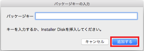 パッケージキー発行サイトから取得した「パッケージキー」を入力し、「追加する」をクリックしてください。