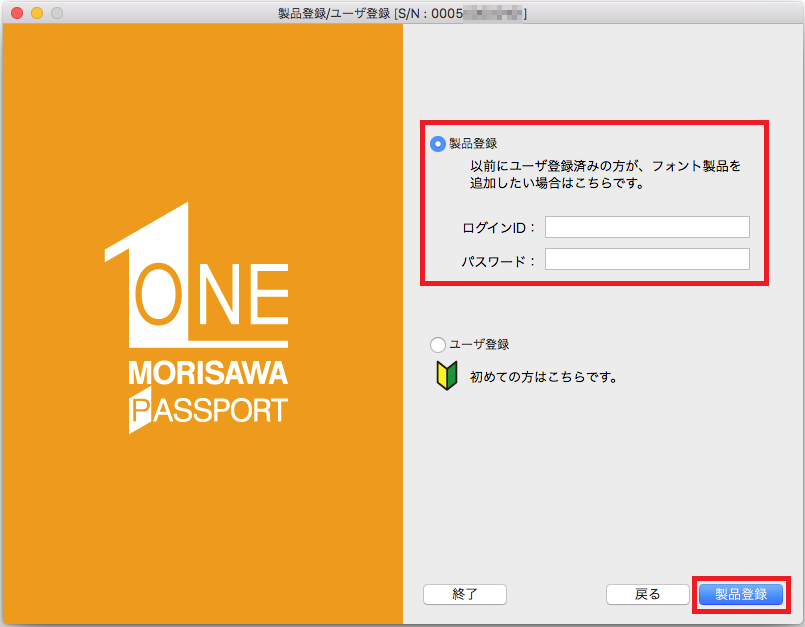 MORISAWA PASSPORT ONEの初回インストール時は仮登録の段階にあります。