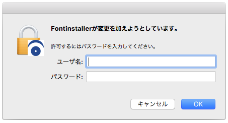 こちらの画面に必要な名前とパスワードは、Macをセットアップした際に設定されているものになります。