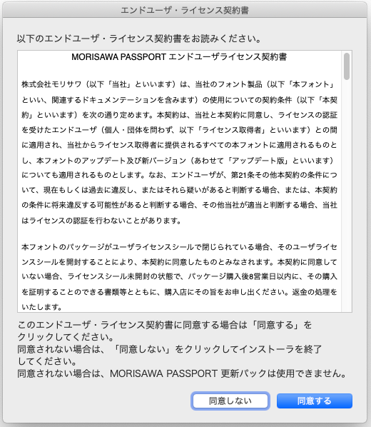 エンドユーザ・ライセンス契約書に同意いただけない場合は、更新専用パックのご利用はできません。