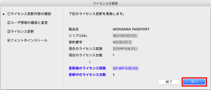 1. ライセンス更新内容の最終確認をします