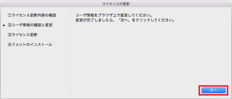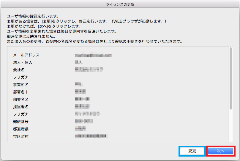 変更がなければ、「次へ」をクリックし、【ライセンス更新の実行】へお進みください。